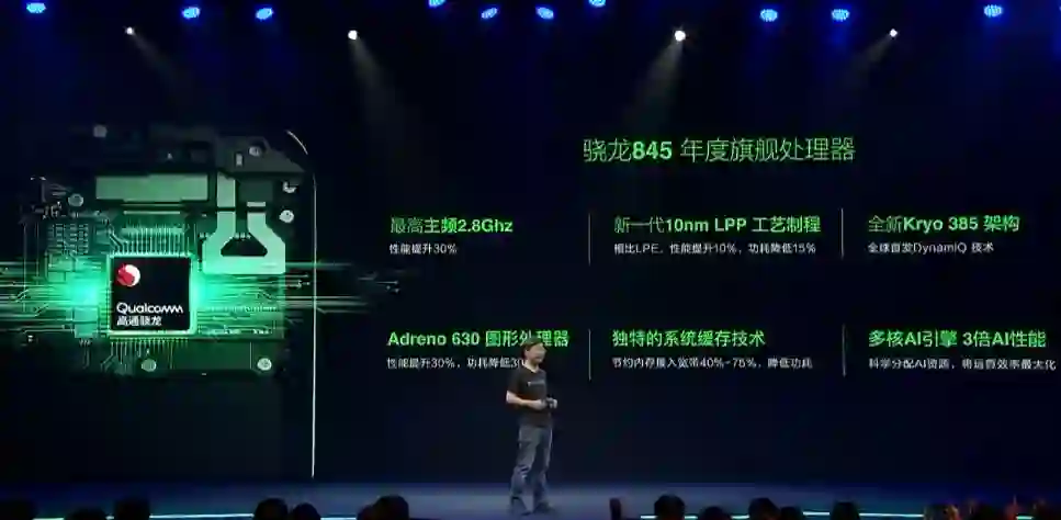 还有LOGO灯,搭载骁龙845,Adreno 630图形处理器,10nm LPP工艺制程,最高主频2.8Ghz,拥有多级直触一体式液冷系统,一体式金属熔接方案。