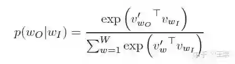 根据 的定义,我们可以把两个vector的乘积再套上一个softmax的形式转换成上面的神经网络架构(需要非常注意的一点事hidden layer的激活函数,大家要思考一下,到底是sigmoid函数还是普通的线性函数,为什么?)。在训练过程中我们就可以通过梯度下降的方式求解模型参数了。那么上文所说的输入向量表达就是input layer到hidden layer的权重矩阵