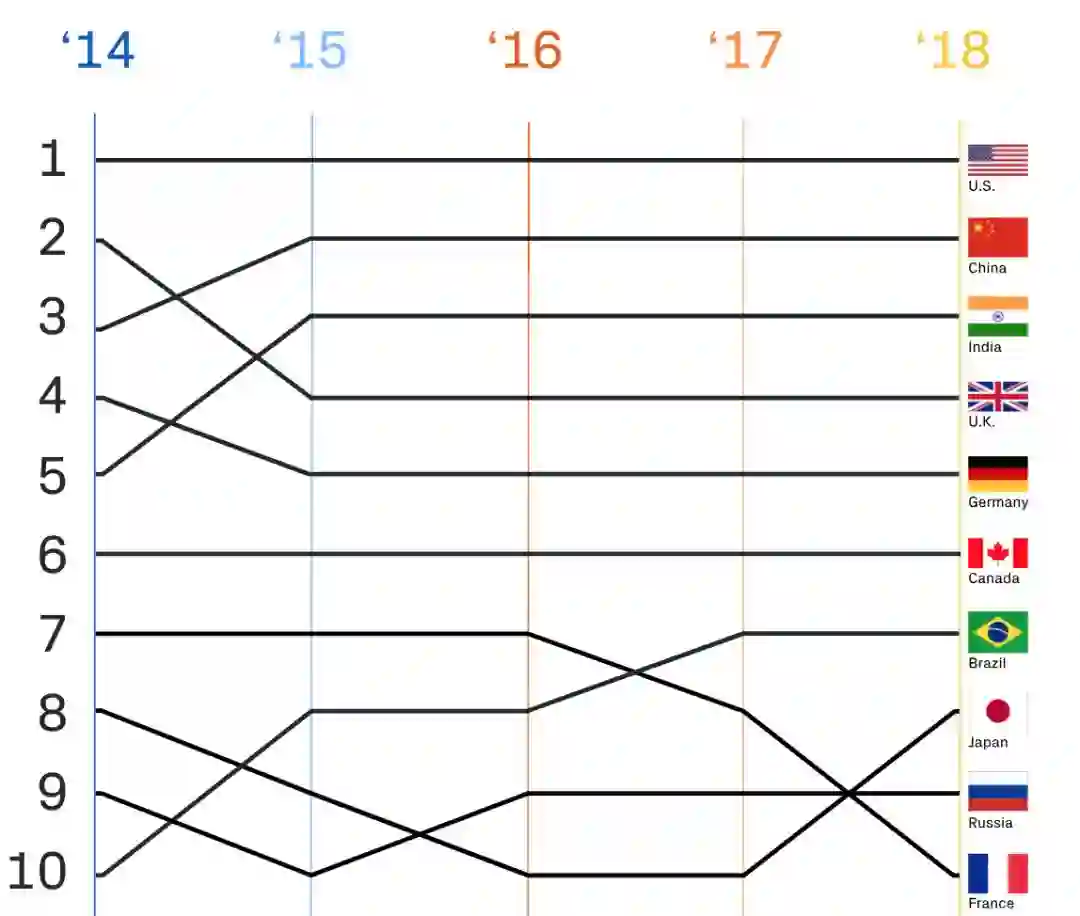 美国、中国和印度是 contributors 数量最多的三个国家,中国今年占据第二位,提升了一个名次。今年有 800 万新开发者加入 GitHub,并且新增注册数量最多的也依次是美国、中国和印度。2018 年的新增用户数远远超过了前六年的总和。新的 contributors 是 2017 年的 1.6 倍。