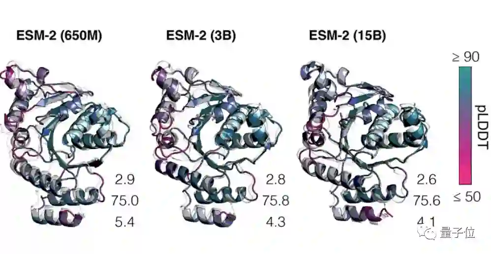 ESMFold模型的参数量达150亿之后,其分辨率更高了,能达到原子级别。