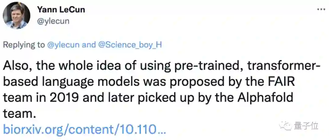 有意思的是,虽然AlphaFold更早问世,但LeCun曾指出这个思路是他们先提出的: