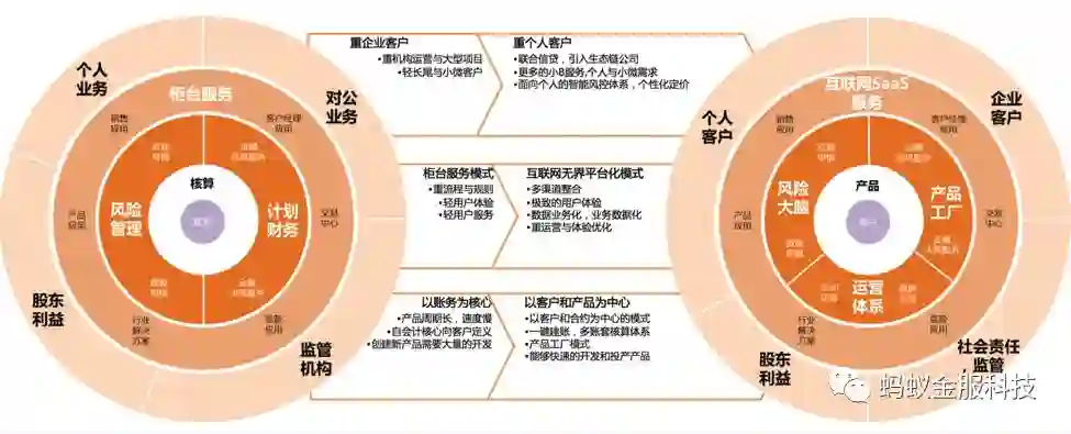 在过去几年中,通过对市场的分析和调研,结合国家的战略和蚂蚁金服自身在业务发展过程中的思考与实践,我们看到了金融行业所面临着的转型趋势。