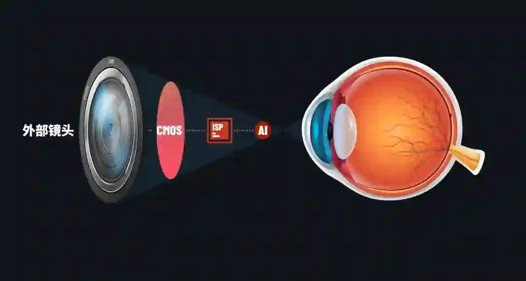 为了方便大家理解,我们继续以人眼的原理,来科普一下手机成像的过程。外部镜头等于眼睛的角膜,CMOS 等于视网膜,ISP 图像信号处理器就是大脑里负责视觉信息处理的大脑皮层,AI 算法芯片就是处理细节的中区皮层。他们之间的复杂协作,完成了我们看到的照片和视频,那如何提升“眼睛”的底层能力呢?需要从以下几个方面入手。