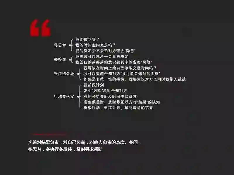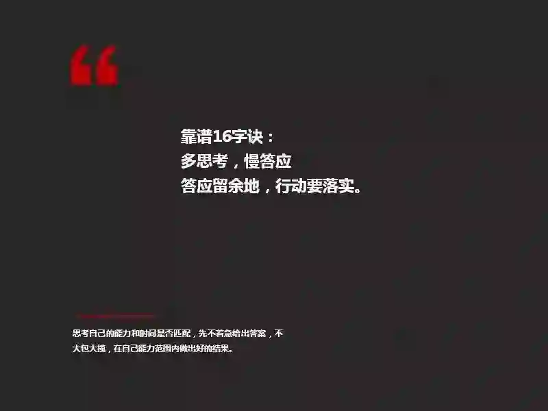 我总结了16字诀:“多思考,慢答应,答应留余地,行动要落实。”
