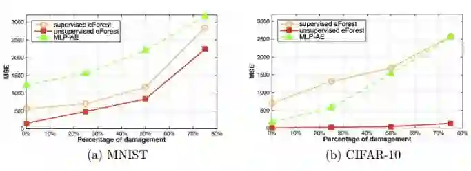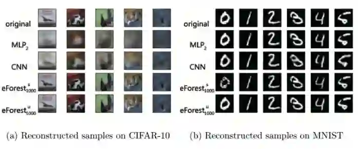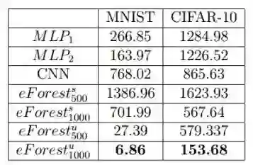 高效性:eForest 在单块 KNL(多核 CPU)上训练的速度甚至比 CNN 自编码器在 Titan-X GPU 上还快。