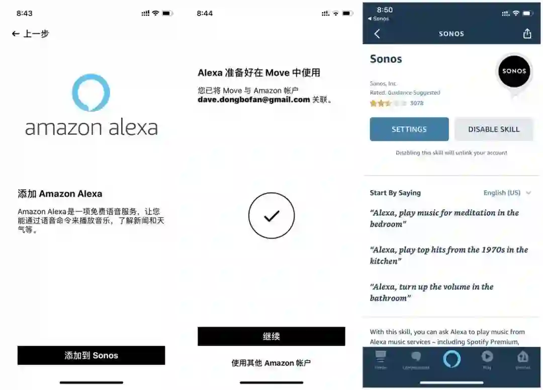 我自己尝试了一下,最后只成功配对了 Alexa,可以通过语音指令方便地控制播放以及直接按歌名、专辑、歌单等点歌,不过 Alexa 对流媒体平台还是做了限制,只适合于 Spotify、Amazon Music 等。