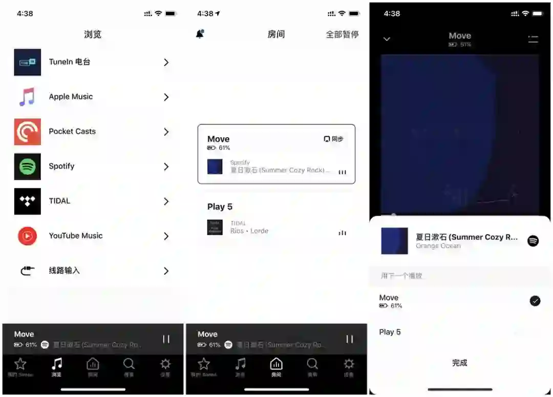 Sonos 音响的看家本领自然是 Sonos 这套系统,在 Sonos App 中不但可以整合不同流媒体平台的资源,还可以非常方便地控制每一台 Sonos 设备,让它们协同工作或者各司其职。