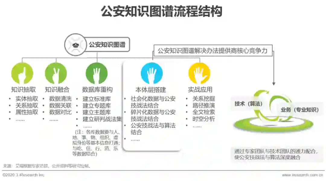 公安大数据是全面助推公安工作质量变革、效率变革、动力变革的重要力量,受到党中央和公安部的高度重视,而作为大数据和人工智能双重技术的应用表现,知识图谱通过数据分析、文本语义分析等,抽取出人、物、地、组织机构、服务标识等实体,并根据实体的属性联系、空间联系、语义联系、特征联系等建立相互关联,构建一张具有公安特性的多维多层的实体与实体、实体与事件的关系网络,在解决公安大数据发展中面临的数据缺乏关联性等问题时起到了重要作用。建设公安知识图谱仍然遵循知识图谱搭建逻辑,其中知识抽取、本体层建设和实战应用开发,需要将公安部门多年积累的实战经验与技术算法相互转换,重点考验公安知识图谱解决办法提供商对公安业务的理解能力和专业积累,是该行业竞争中重要的壁垒。
