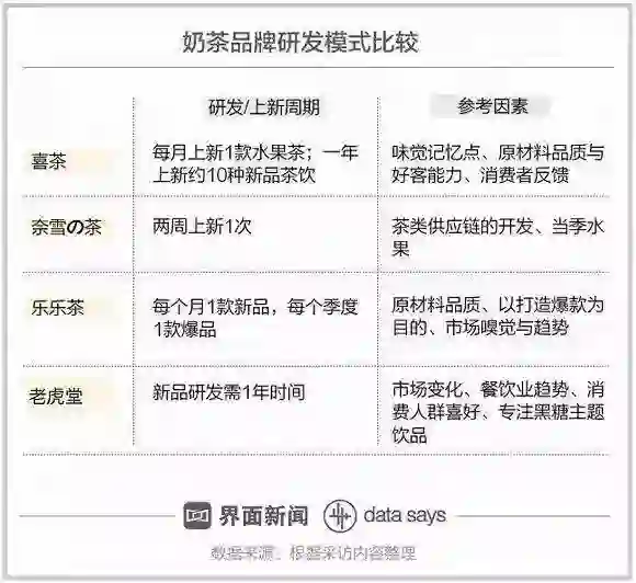目前,喜茶和奈雪の茶都保持着每个月一款产品的上新速度 。而强调自身创新力的乐乐茶更是定下了“1月1新品,1季1爆品”目标。
