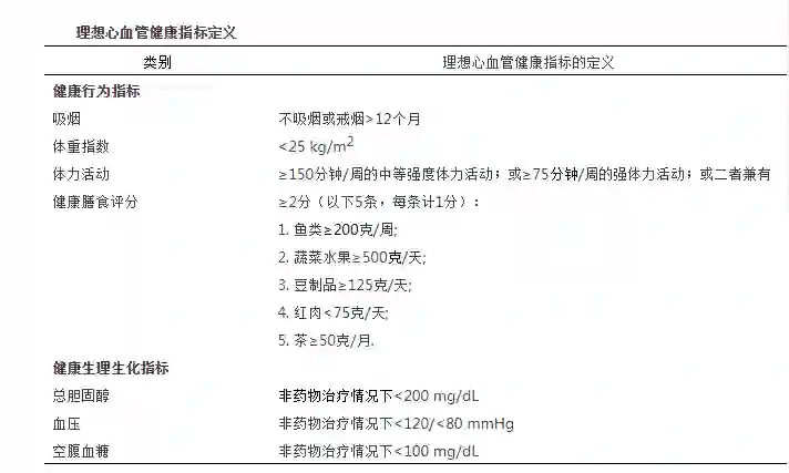 该研究整合了China-PAR项目的三个队列人群,总样本量近9.4万人、最长随访跨度17年,新发ASCVD疾病3457例。结合国际标准和中国人群膳食习惯,定义7项CVH指标的理想水平如下: