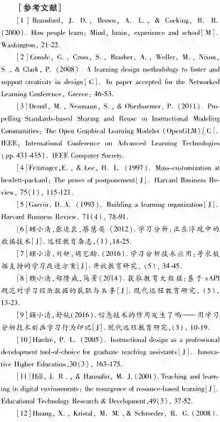 与标准化的教学设计相比,学习设计的定制需要应对更复杂的教学环境(如混合式环境、虚拟环境等)。同时,教学过程的动态化决定了教学阶段存在诸多的可变性。因此,仅在学习设计中嵌入新的技术是不够的(Kakati,2002)。如要发挥新的流程和技术的潜力,设计者必须适当地对技术加以改造和应用。学习分析正是具有这一潜力的嵌入性技术,能够通过基于数据的总览性描述和分析,推动个性化学习的实现(顾小清等,2016)。