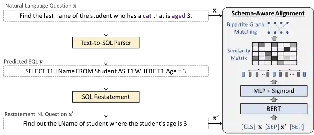 王柏林: 前位嘉宾讲到了通过语法来增强解码器,接下来我要介绍的就是如何利用关系感知的编码(Relation-Aware Encoding)来增强Text-to-SQL任务中编码器的能力。当我们在构建面向数据库的Text-to-SQL系统时,系统其实需要完成两件事: 模式编码(Schema Encoding)与模式链接(Schema Linking),这里的模式指的是数据库模式,包括表名,列名和值。