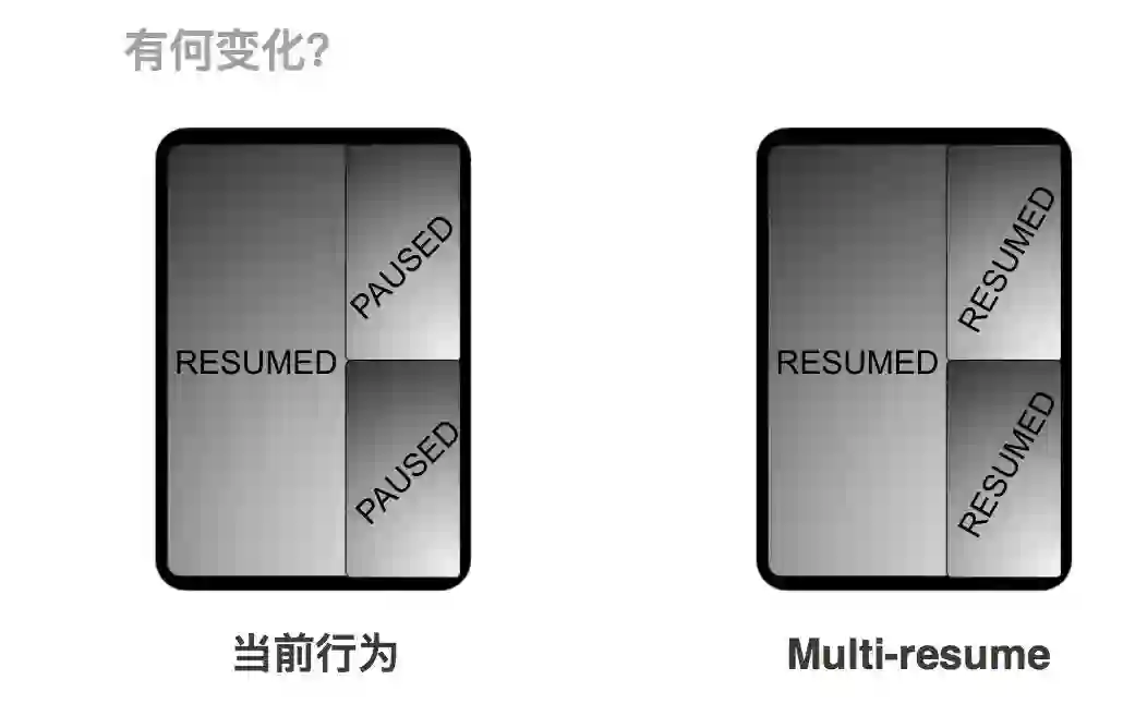 为了让开发者能够以最小的工作量实现最佳的多窗口体验,从 Android 9 开始,我们允许设备厂商在多窗口模式下保持所有可见应用处于 resumed 状态。