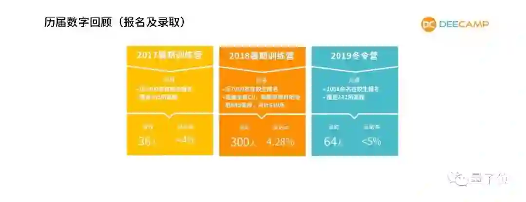 从2017年的夏天开始,DeeCamp现在已经走到了第三年,整体录取率约在4%左右。