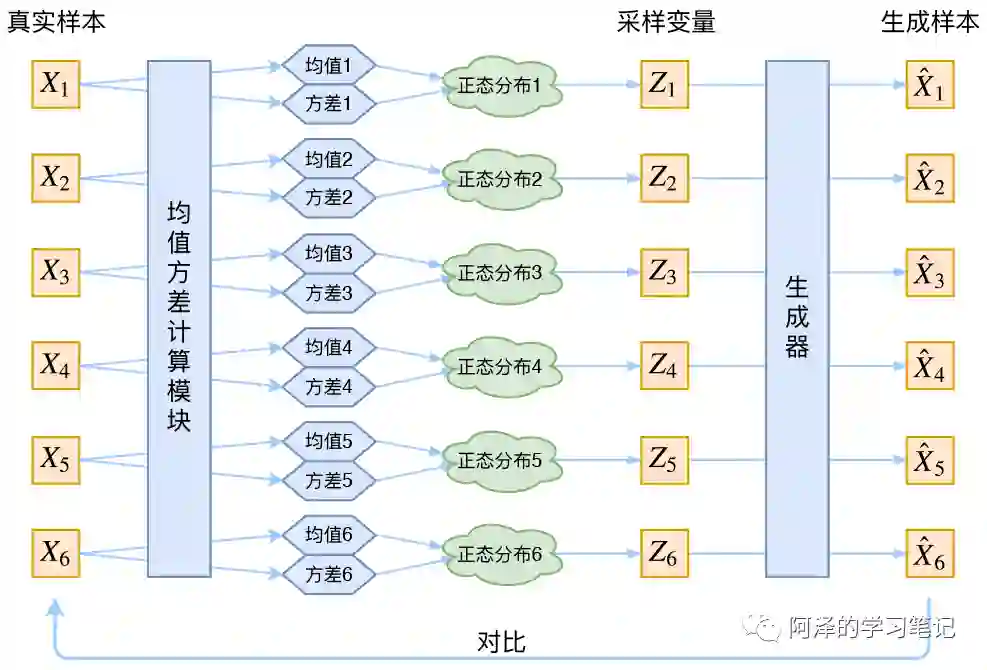 这样,我们便能通过每个样本的专属分布来还原出真实样本。