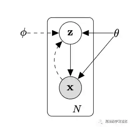 而 VAE 则是利用神经网络学习来学习变分推导的参数,从而得到后验推理的似然估计。下图实线代表贝叶斯推断统计的生成模型 ,虚线代表变分近似 。