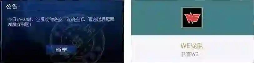 2012年, WE 赢得了 IPL5 世界总冠军( IPL 系列赛事不是官方赛事,由主办方直接邀请知名战队参加,而全球总决赛需要经过层层选拔才能进入,比 IPL 含金量更高)。当时,腾讯公布全服双倍经验、双倍金币,还有战队专属纪念图标庆祝 WE 夺冠。