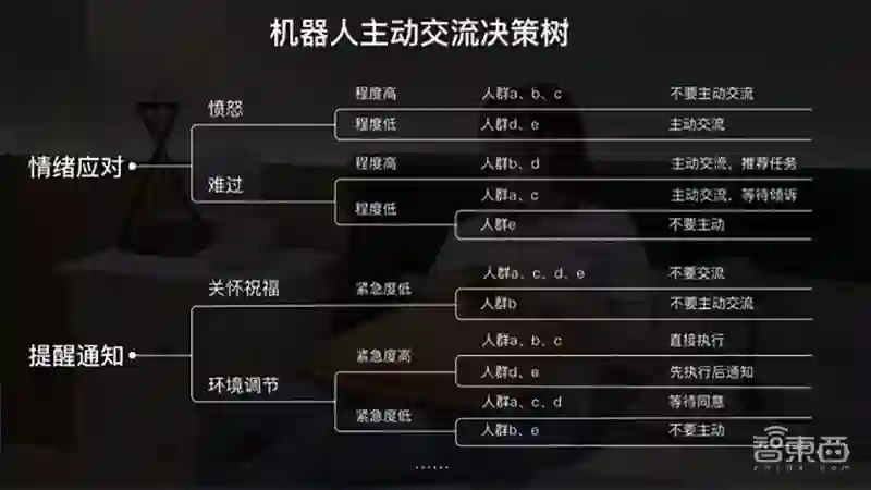 此外,通过在实验室设置不同情境,邀请不同人群体验,模拟积累了大量数据,总结形成决策树,从而赋予机器人更高的智商和情商。