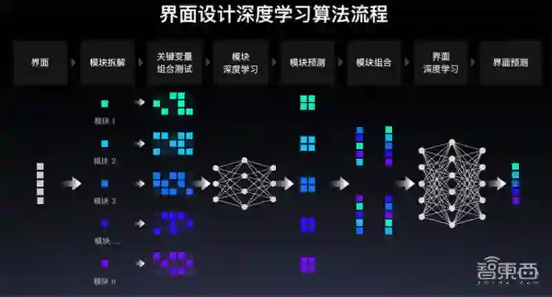 百度基于深度学习平台飞桨(PaddlePaddle)的算法,将界面拆解成不同模块,在每个模块下让机器深度学习,找到最优模块设计区间,然后将每个模块的最优区间组合成不同界面,构建页面级别的深度学习算法模型,最终找到最优界面设计方案。