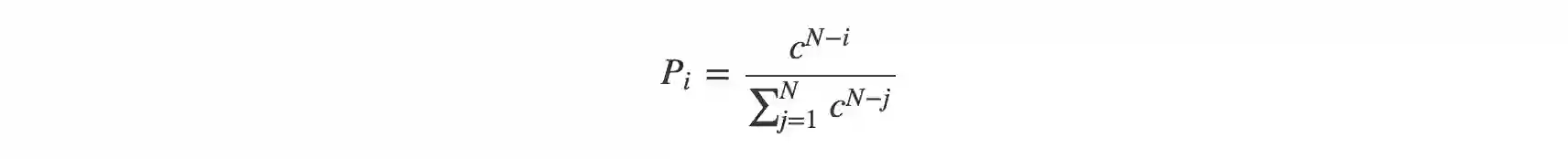 类似上面的Linear Ranking选择策略,这种指数排序便是在确定每个个体的选择概率的时候使用了指数形式的表达式, 其中c为底数,满足0<c<1: