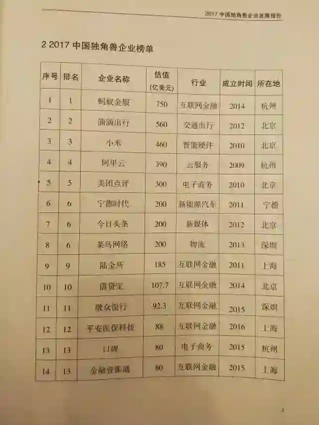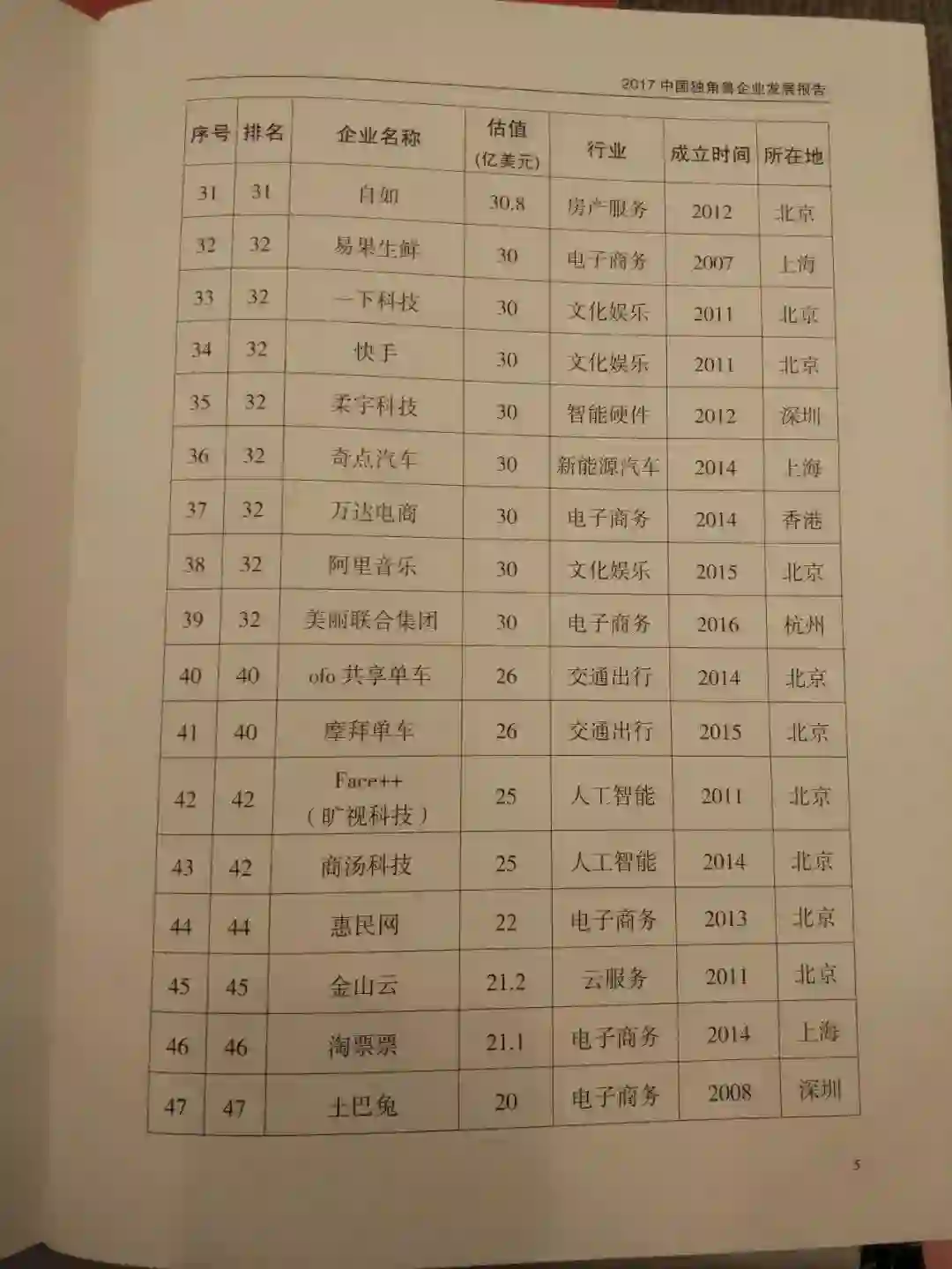 ⑤符合条件①②③,且企业估值超过(含)100亿美元的称为超级独角兽。(估值以2017年12月31日前最新一轮融资为依据)