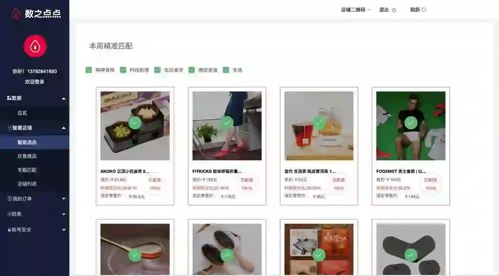 该系统能够帮助自媒体AI智能精准匹配选品,一键生成定制化“智慧商城”,提供商品、客服、发货等服务。