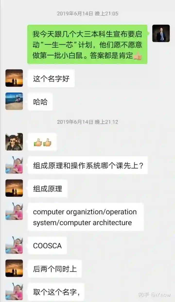 我们在调研中发现和“一生一芯”计划目标最接近的是2017年春季开始UC Berkeley开了一门新课 EE194/290C “28nm SoC for IoT”,目标是设计一个SoC芯片,集成各种IP模块,包括一个Berkeley开发的RISC-V Rocket处理器核。这门课以流片为目标,2017年春由9位本科生与1位研究生参加,通过1学期完成了流片,但未提供信息证明芯片能正常工作。伯克利EE194/290C这门课是根据已有的RISC-V核和其他IP核进行SoC集成。而“一生一芯”与EE194/290C课程的区别在于要让本科生直接设计一款64位RISC-V处理器,然后在这个核的基础上,学生们需进一步集成与验证一系列外围IP,最终形成一个能运行Linux操作系统的SoC芯片,这极具挑战。一年前,我们不知道这个目标是不是可行,最终能不能成功。但如今,我们探了回路,并且把路走通了,证明是可行的。这个摸索的过程积累了不少经验,也充满了教训。五位同学作为小白鼠参与首期“一生一芯”计划,成长了很多。他们不仅在项目中掌握了处理器芯片设计所需的专业知识,也锻炼出了优秀人才所具备的出色心理素质。一起来看看他们的感悟:如今,这五位同学正在参与一个更有挑战的项目,开发一款高性能乱序多发射RISC-V处理器核的设计。一年前,他们在做“果壳”时还有些吃力,现在已是这个新团队中的骨干,和其他博士生和工程师们一起攻坚克难。去掉团队中蔡晔、唐丹和我这三位40岁以上的中年人,这支队伍平均年龄只有23.1岁,但他们表现出来的战斗力却是惊人的——不到三个星期就从头开始完成了乱序处理器主流水线的设计与实现,并且通过CoreMark测试。等到他们30岁时,就可以说已经是处理器芯片和计算机系统设计领域的“老兵”了。那时,他们将进入各自的工作岗位,也许去工业界研发产品,也许在学术界做科研。相信那时他们的创造力会得到更大的发挥和展现。我对这批年轻人的未来充满期待。从教学团队角度来看,除了前期在总体方案、环境平台等方面需做好充分准备以外,在开发过程中有四方面指导尤其重要(以下为余子濠老师总结):