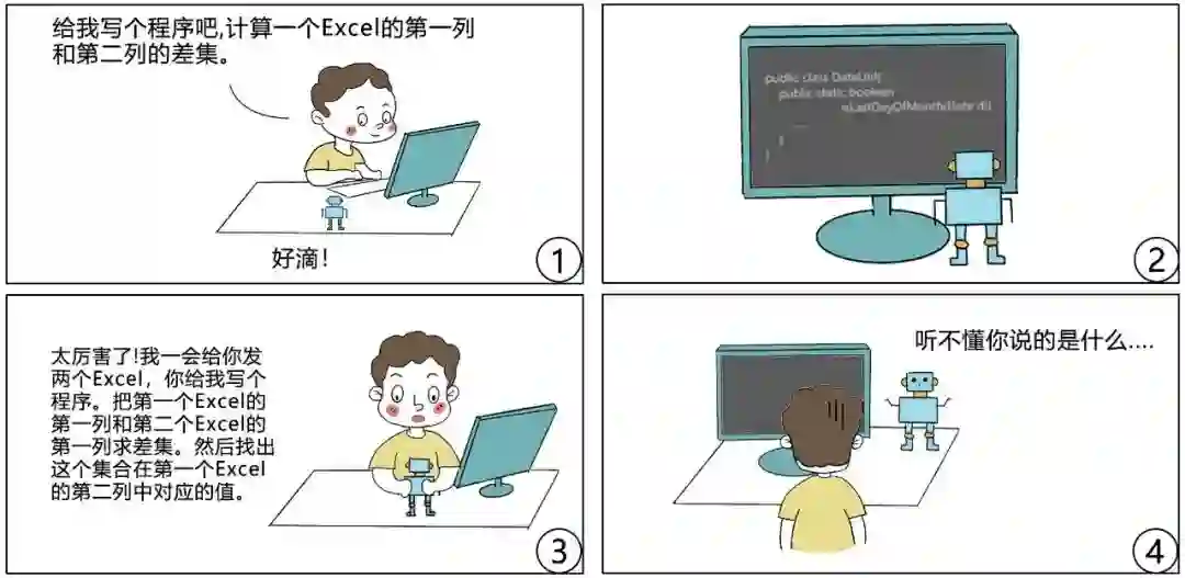 因此,若一个 AI 编程机器人缺乏组合泛化能力,则必然会导致如前面漫画所体现的“人工智障”情况。