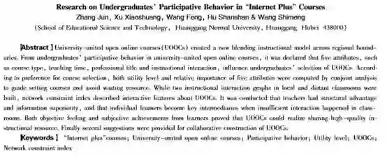 关键词:“互联网+”课程;网联课程;参与行为;效用水平;UOOCs;网络约束系数