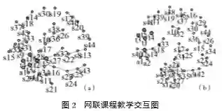在网联课程这种“互联网+”课堂形式中,当教学交流不充分时,个别学生自然成为了分担教师角色的中间人,如图3(a)中的s9,s31,图3(b)中的s8,他们的网络约束系数分别为0.25、0.20和0.11。因连接多位学生形成班级网络中的结构洞,同时需注意到异地班级之间学生没有建立任何联系。