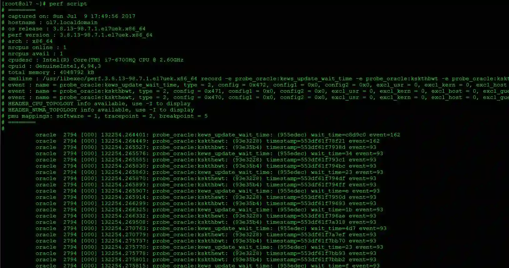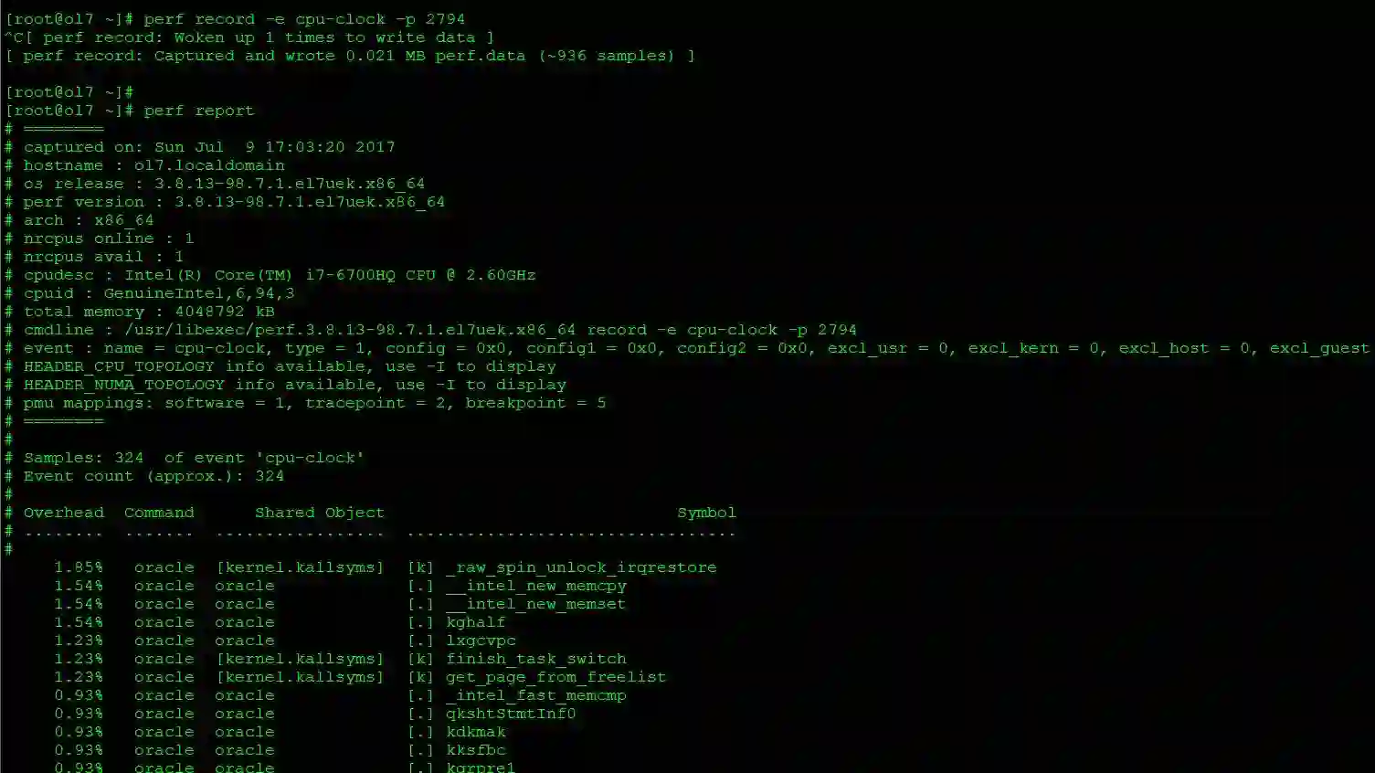 这里介绍的Perf是运行在Oracle Linux Server Release 7.2上,内核版本4.1.12
