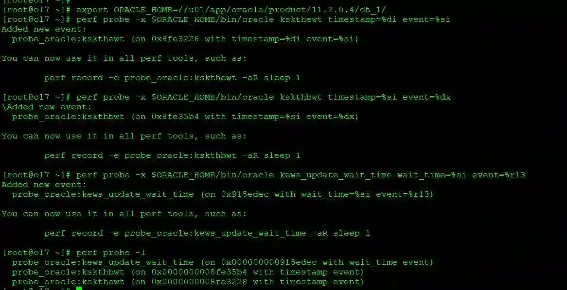 前面介绍的都是Perf的一些基本用法,后面我们来介绍一下它怎么和Oracle结合起来,做一些动态追踪技术。动态追踪技术主要使用的是探针,下面我们来介绍一个例子。