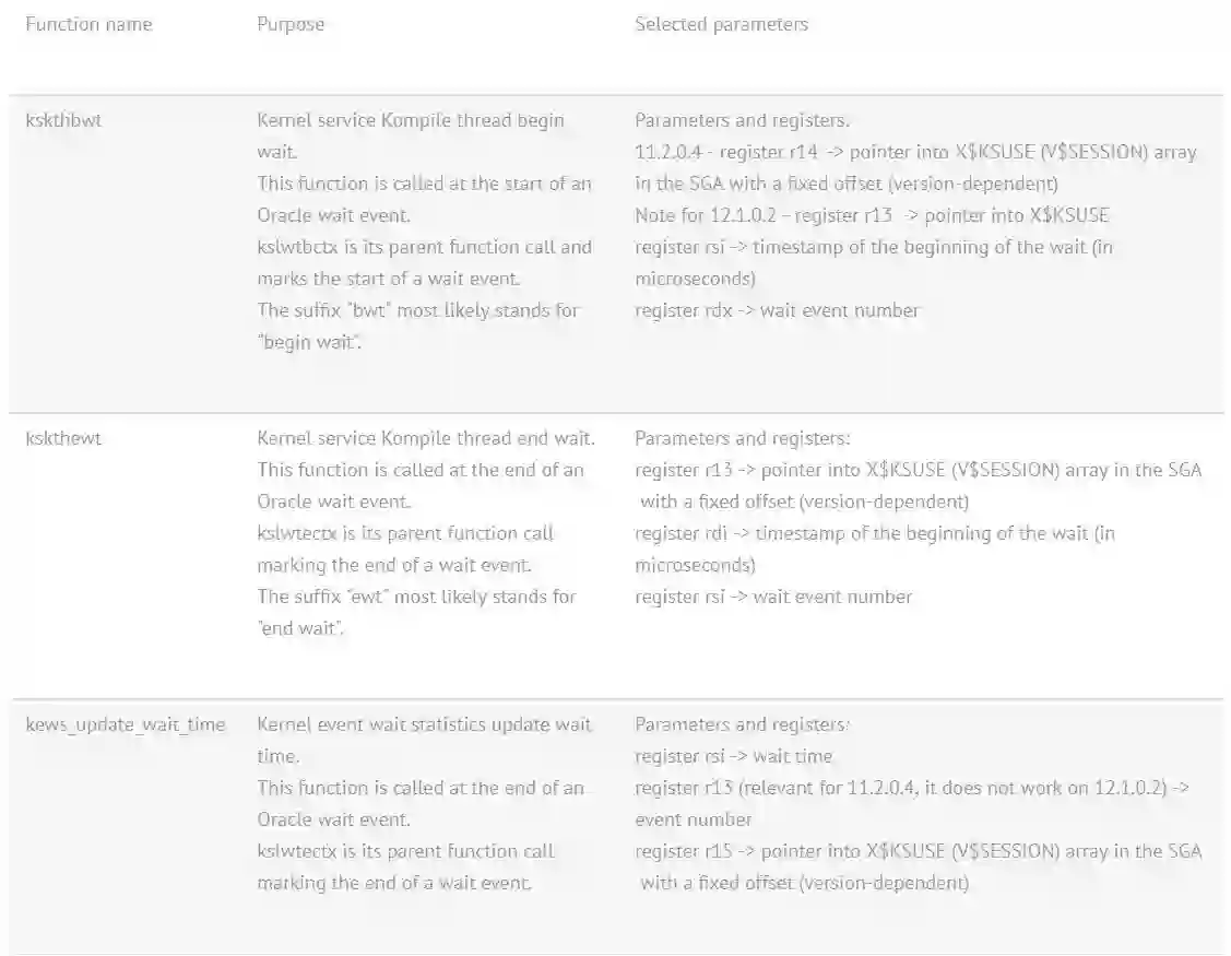 这里首先要介绍一下Oracle内核的三个函数:kskthbwt、kskthewt、kews_update_wait_time。