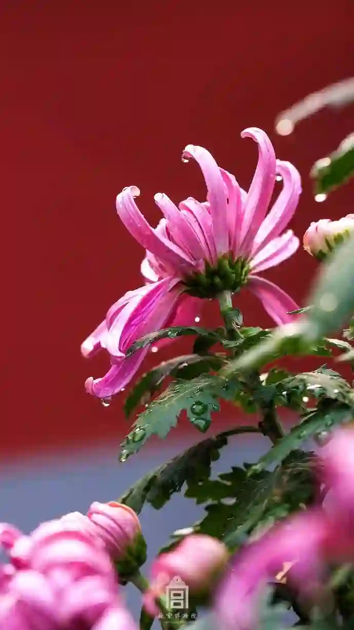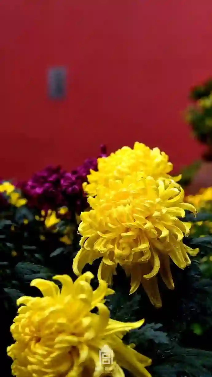 娇柔的花遇上朱红的墙