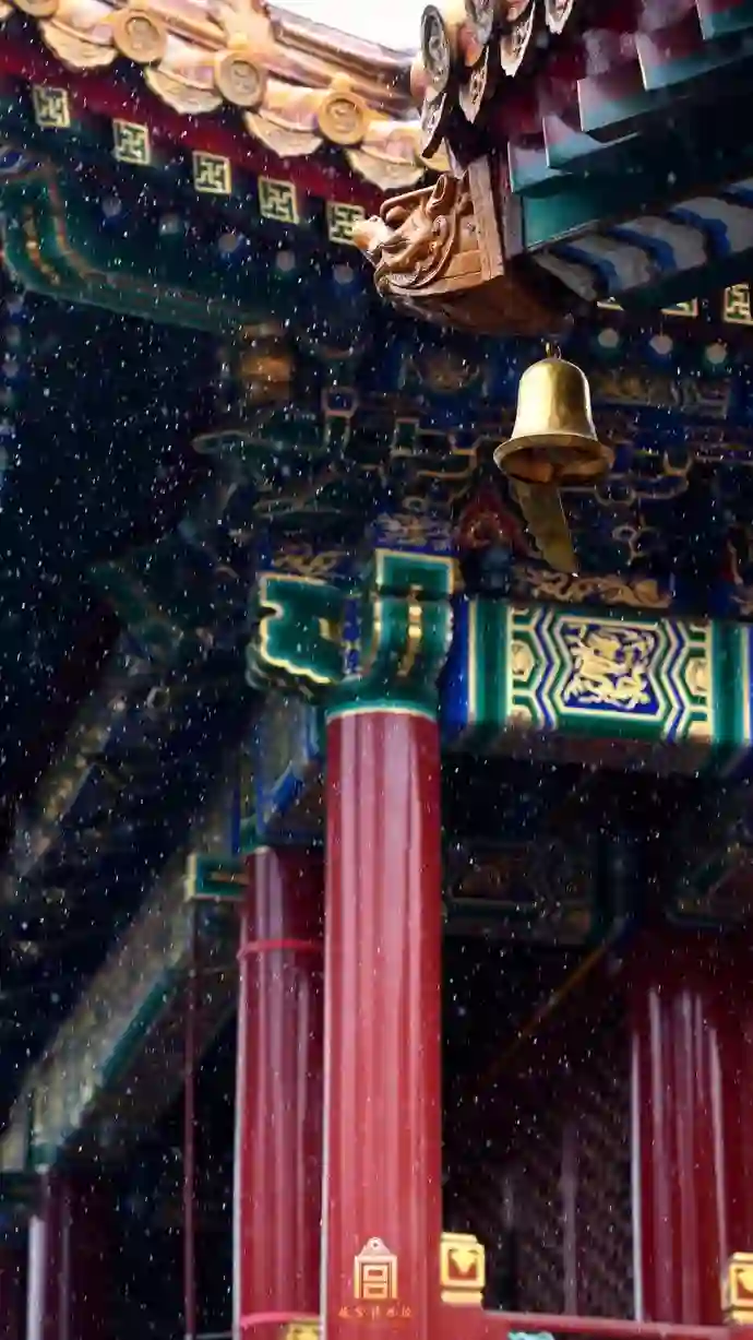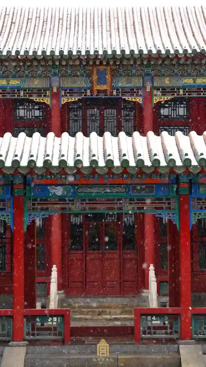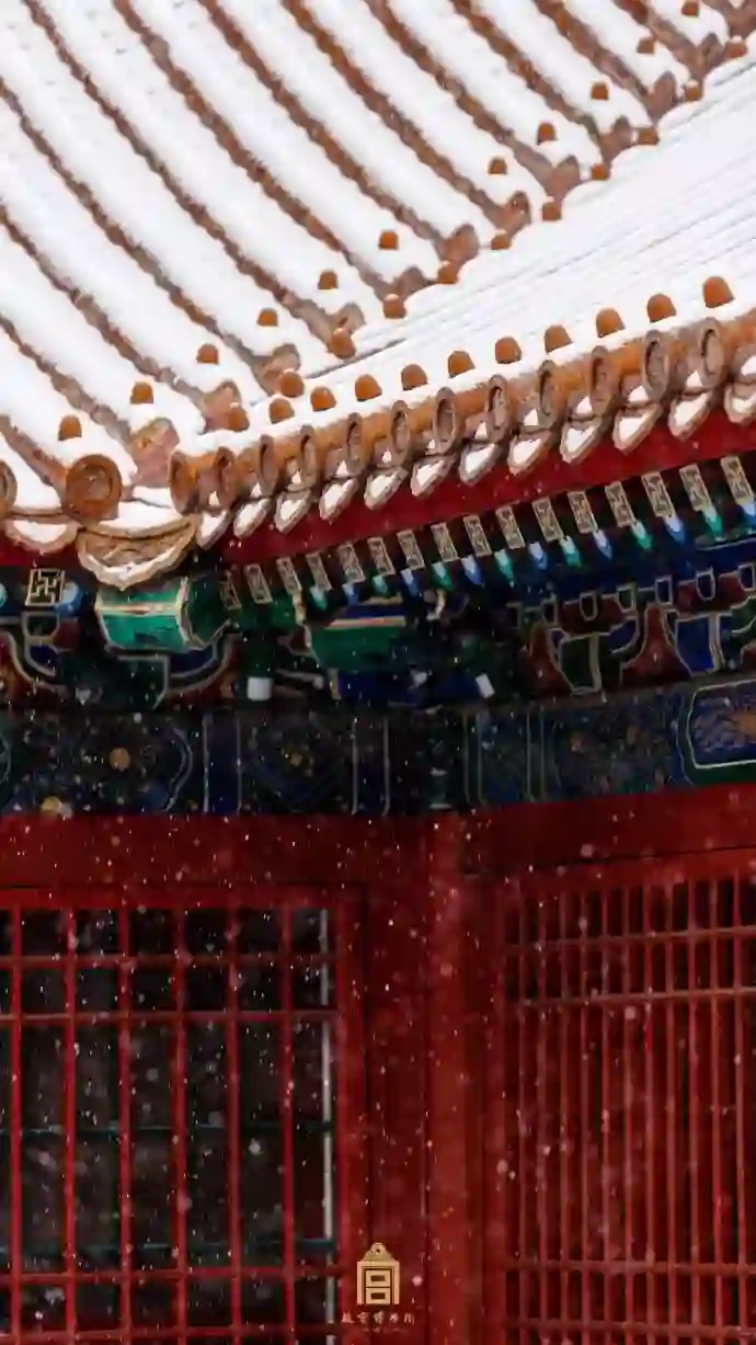 看飞雪中的碧瓦飞甍、雕梁画栋