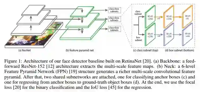 作者也提到,人脸检测也受到了通目标检测算法的启发,如frcnn、 R-FCN、SSD、FPN、RetinaNet、RefineDet等;