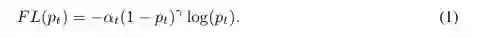 RetinaNet是1-stage的目标检测算法,没有RPN阶段,直接在feature map上做密集的anchor采样(over a regular, dense sampling of possible object locations),速度快;此外,为了解决SSD等1-stage目标检测算法中,训练阶段的正负样本不均衡问题(毕竟RPN还有过滤海量负样本的作用呀,虽然frcnn中RPN通过粗暴的控制正负样本比例为1:3做了负样本过滤),RetinaNet就通过focal loss进一步控制训练阶段的正负样本比例,效果好,如公式(1)、(2):