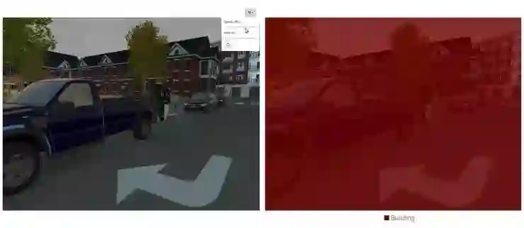 图12:图片分割可视化的样本展示:网络(模型)把所有元素都归类成了“建筑物”。此样本是利用随机权重初始值的方法,在DIGITS里用Synthia数据训练FCN-Alexnet网络(模型)得到的。