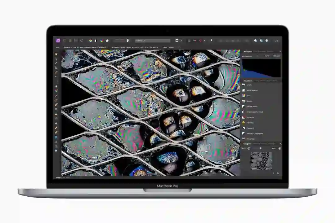 得益于速度更快的 8 核中央处理器及 10 核图形处理器,在诸如 Affinity Photo 等 app 中处理 RAW 图像的速度相比上一代 MacBook Pro 提升近 40%,对于此前未升级至 Apple 芯片的顾客而言,速度提升最高可达 3.4 倍。