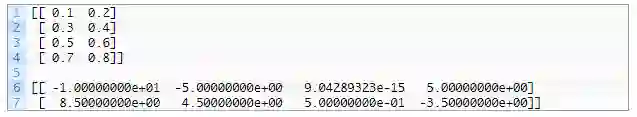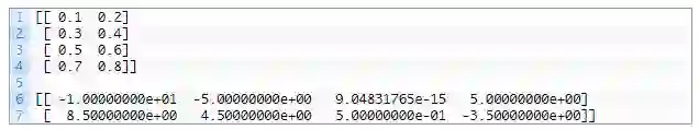 运行这个示例,首先显示定义的矩阵,然后显示计算出的伪逆。