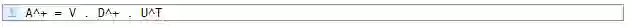 其中 A^+ 是 A 的伪逆,D^+ 是对角矩阵 Sigma 的伪逆,U^T 是 U 的转置。