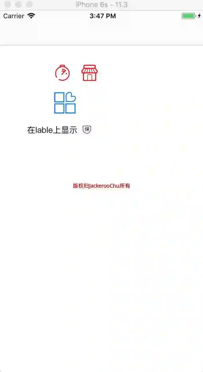 // label,label可以将文字与图标结合一起,直接用label的text属性将图标显示出来