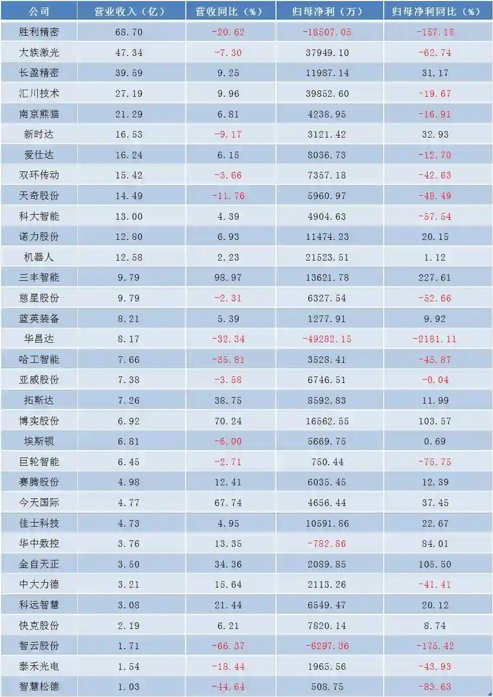 其中,华昌达、胜利精密、智云股份今年上半年分别亏损4.93亿元、1.85亿元、6297.36万元,华中数控亏损782.86万元。