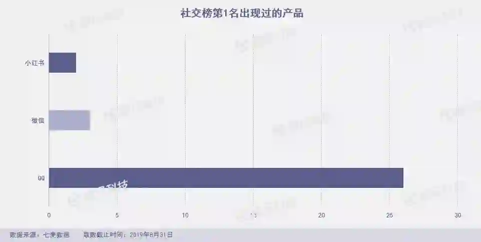 QQ、微信和小红书3款产品占据社交榜第1名。