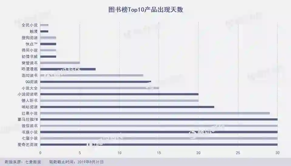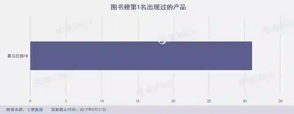 8月,20款产品占据图书榜Top 10,其中,喜马拉雅连续31天霸榜8月图书榜第1名。