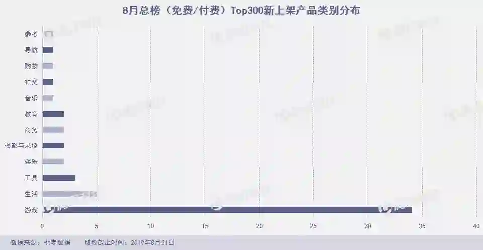 8月,App Store新上架产品约3.9万款,较7月份上架数量增长12%,同比2018年8月新上架产品数基本持平。