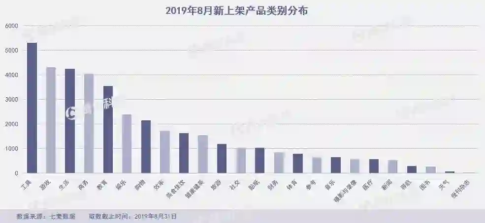 其余新上架数量较多的类别依次为游戏、生活、商务等类别,新产品数量均超过4000款。