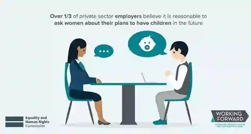 英国2018年的一项调查显示,三分之一的私营雇主认为在招聘时询问妇女未来生育计划是合理的。来源:Equality and Human Rights Commission