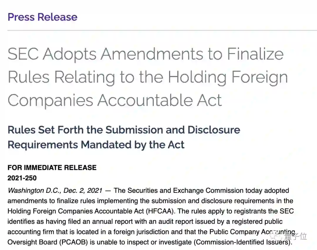 去年(2021年)12月2日,《外国公司问责法》最终修正案通过。