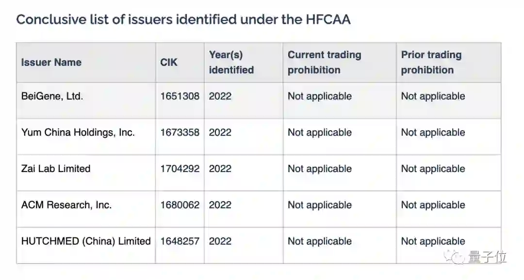 这一法案自2021年年报起实施,最早退市时间为2024年年初。